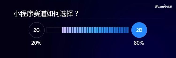 微信生态服务商、微盟创始人兼董事长孙涛勇最近提到的一个观点被媒体广泛提及:「未来小程序赛道里2C方向产品占20%,而80%是2B类的小程序,中国大概有3000万中小企业都可能会拥有自己的小程序」。
