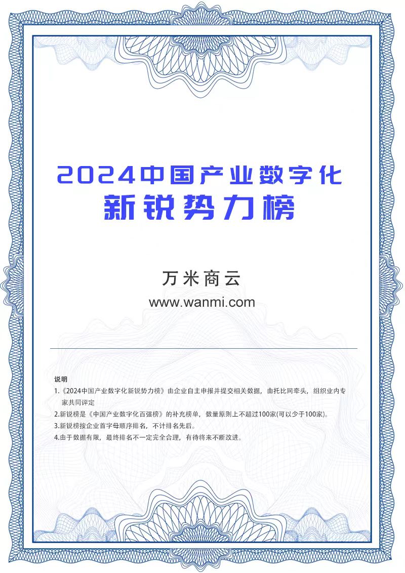 万米作为专注于产业互联网数字化赋能的解决方案服务商,致力于为中大型企业客户提供全方位的数字化采购、渠道分销以及全流程供应链管理解决方案。凭借其卓越的技术方案和丰富的产业数字化服务项目经验,成功入选“2024中国产业数字化新锐势力榜”,彰显了其在行业中的创新实力和领导地位。