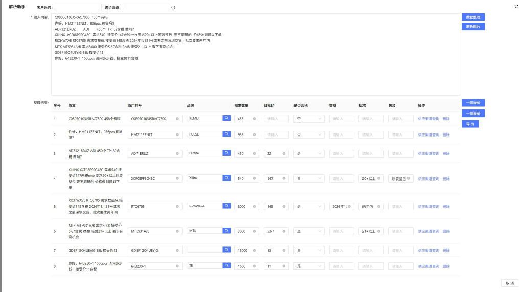 客户常希望一站式配齐上百项物料,但人工录入BOM单耗时长、成本高,导致报价周期延长,错失订单机会。