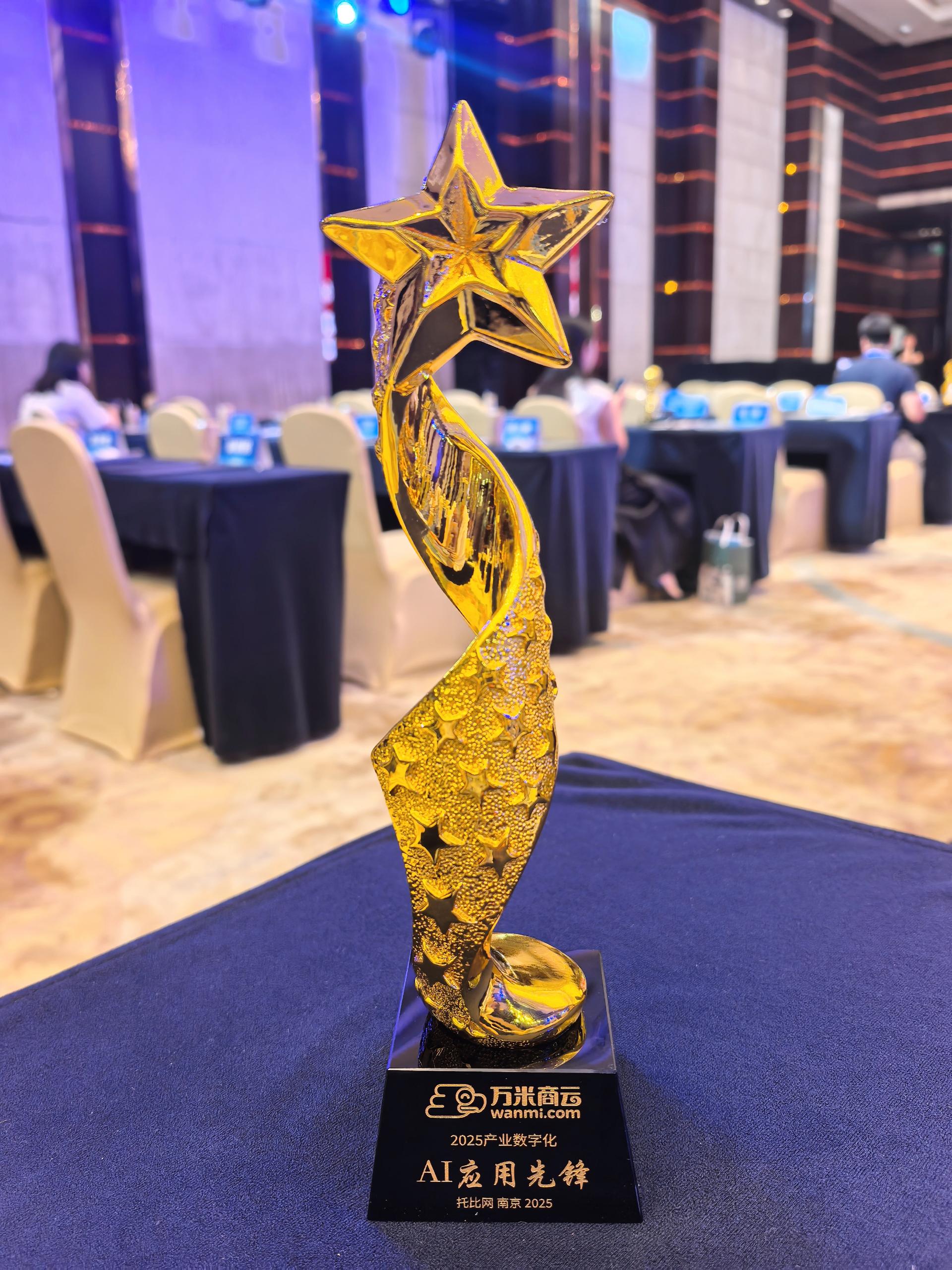 在备受关注的颁奖环节,大会组委会基于技术创新性、应用成效及行业影响力等多维度指标,隆重颁布了“2025产业数字化AI应用先锋”奖项。万米商云凭借其在AI技术应用方面的突出表现和成功实践,成功斩获这一殊荣。