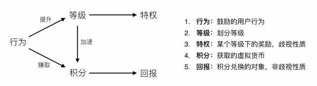 首先要对用户进行分析,定义用户的生命周期,通常情况下分为四个:新用户、待留存用户、黏度用户、沉睡用户。部分公司方因业务相对成熟,中间等级用户基数较大,会继续将中间层级进行细分,匹配更多差异化的权益。我们可以用少量的、关键的、稳定的行为作为确定等级的依据,其它行为则可作为累计积分的依据。
