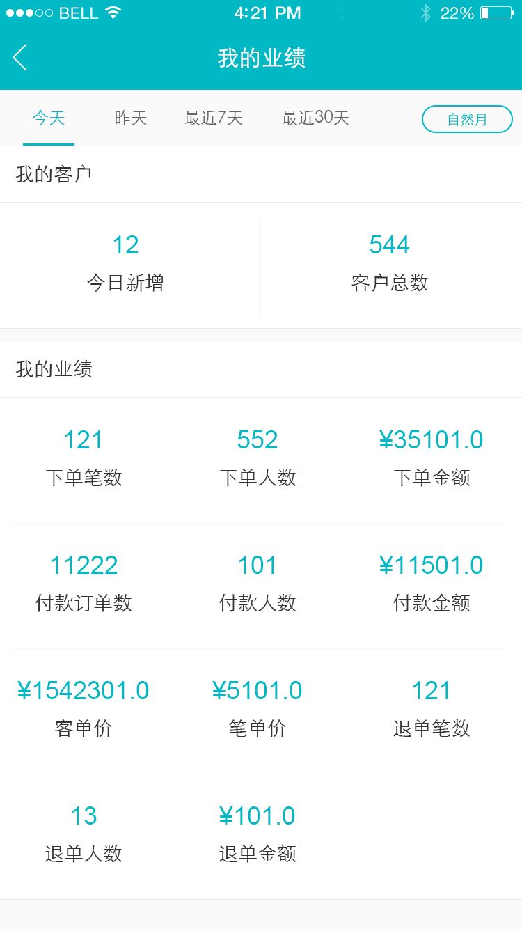 个人业绩看板,可统计关键绩效指标,实时采集销售数据,当天业绩一目了然。