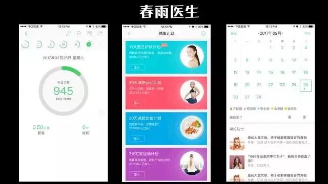 · 增加相对高频的功能:比如春雨医生最早做的是计步功能。往健康上引导,提醒你每天运动的意义。高频功能在很大程度上可帮助APP提升活跃。后来春雨医生又添加了围绕健康的产品价值链, 比如健康计划,和看病是反向的价值,这个功能也相对高频。