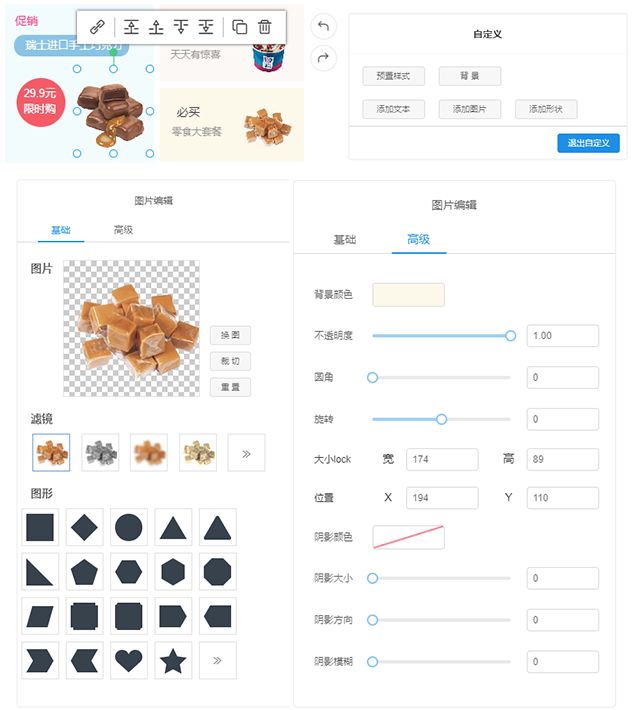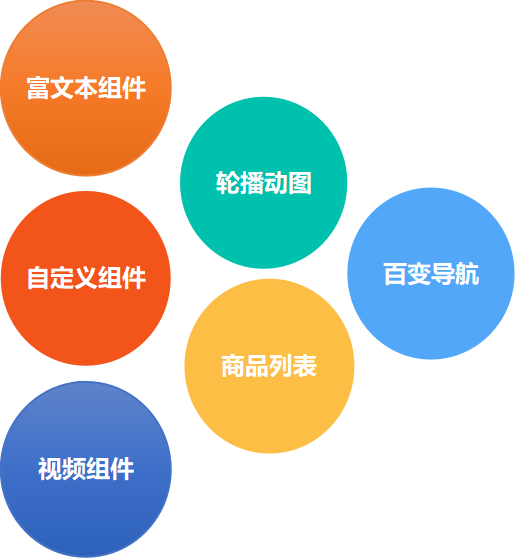 丰富的功能组件与样式组件、多样化组件外观与动效、自由拖拽布局、灵活更换素材…