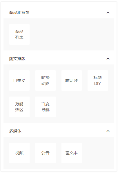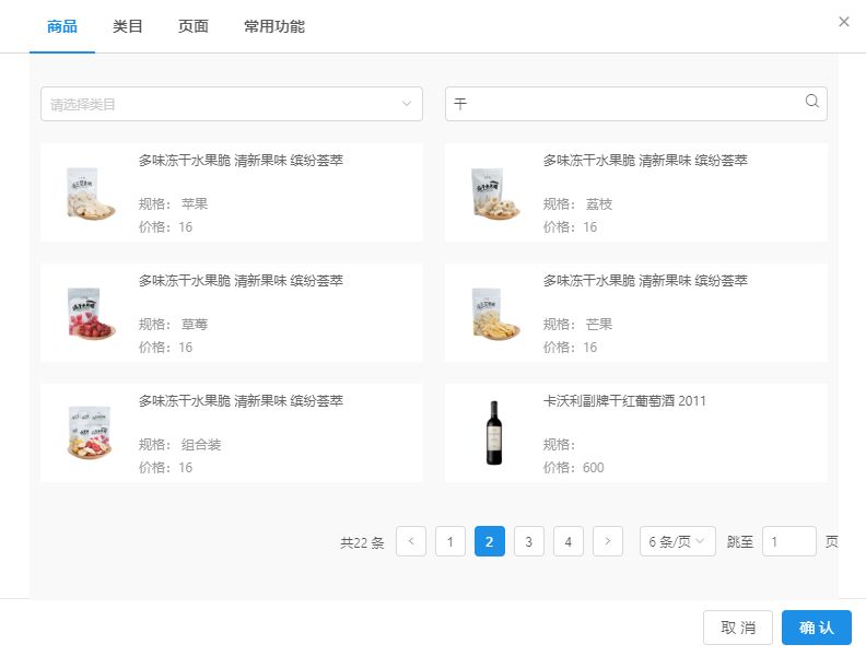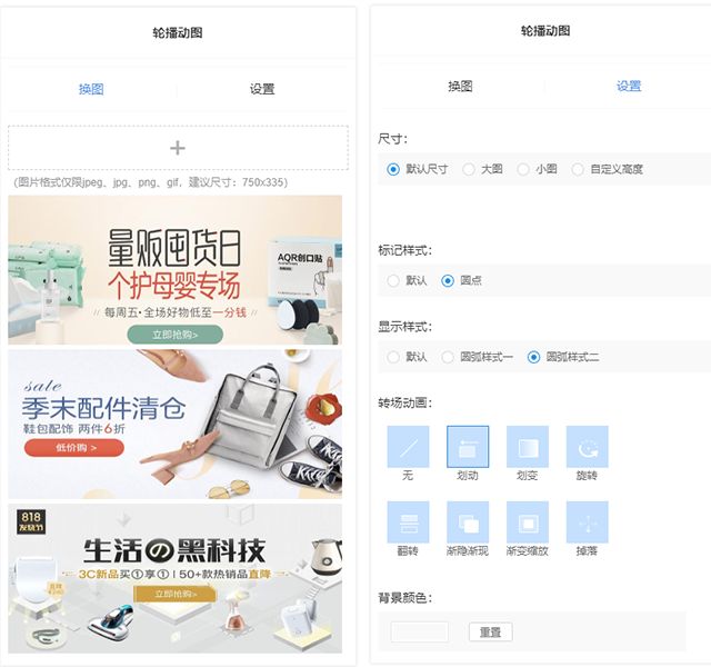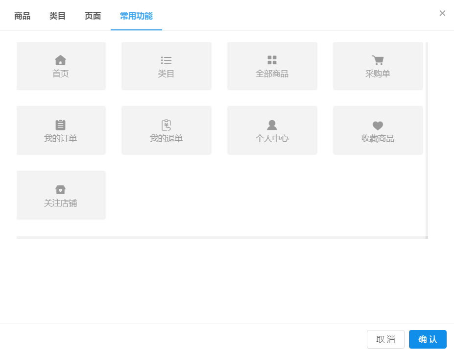 支持链接至商品、商品分类、营销活动、文章页、常用功能、自定义页面、URL地址…