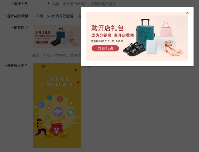 而分销员的招募条件可以自由配置,是邀请新用户或者是购买开店礼包。
