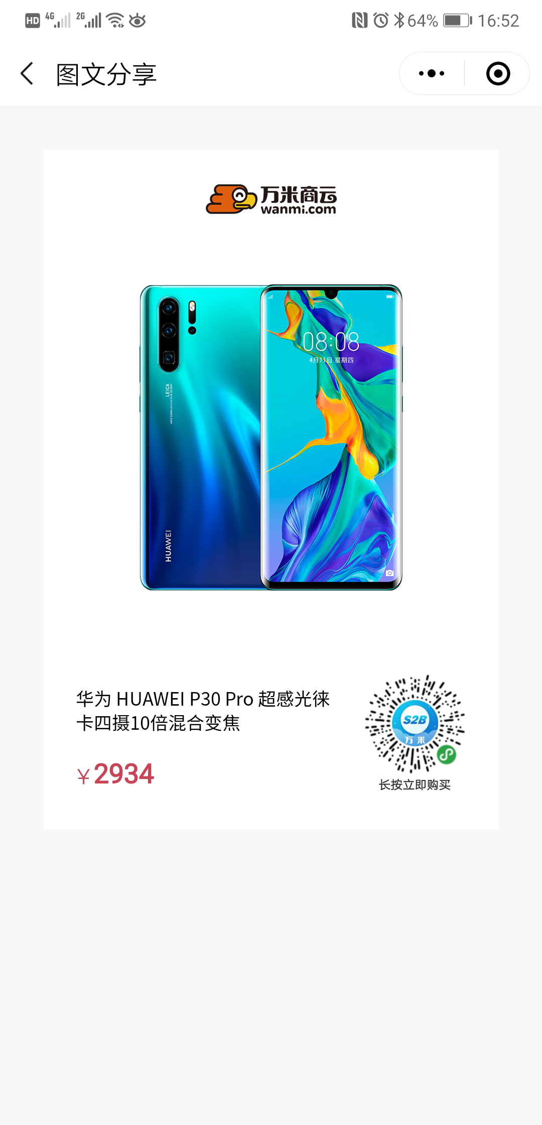 带小程序码的图文分享,更加方便快捷,无需下载App,消费者直接微信点击小程码即可进入分销店铺下载购买。