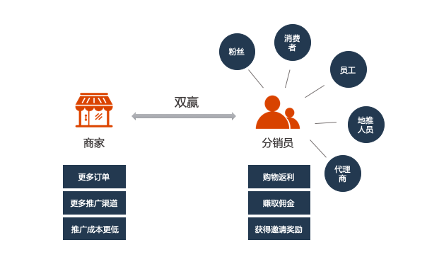 分销模式的每个会员都可以成为分销员,通过社交传播,发展下级分销员/ 会员,从而赚取佣金,和云集、爱库存、环球捕手类似。