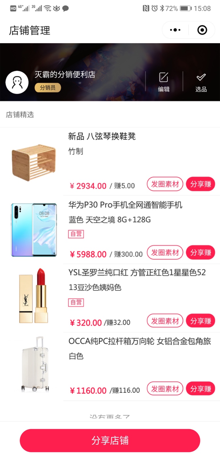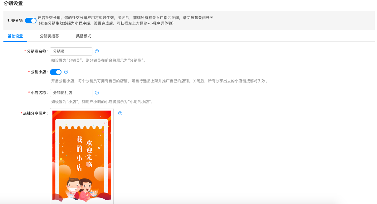 平台还可以设置每个分销员是否拥有自己独立的店铺,分销员可自行选品上架并推广自己的店铺,店铺名称同样可以自定义。