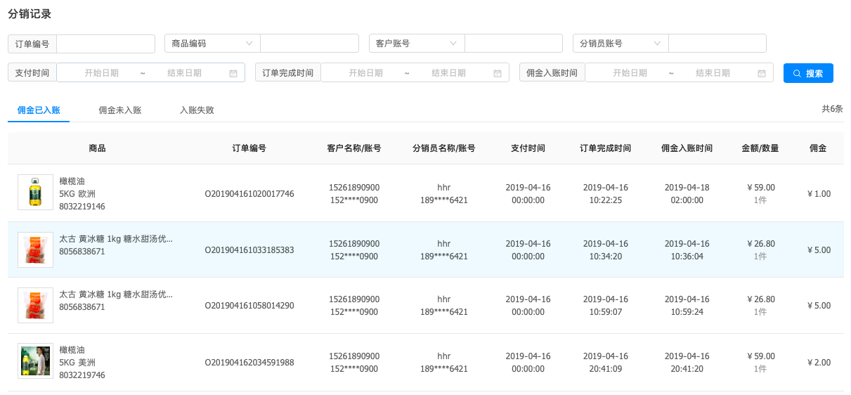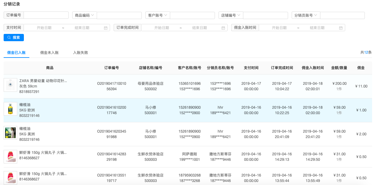 平台方可查看分销员的佣金,了解分销员的分销能力。