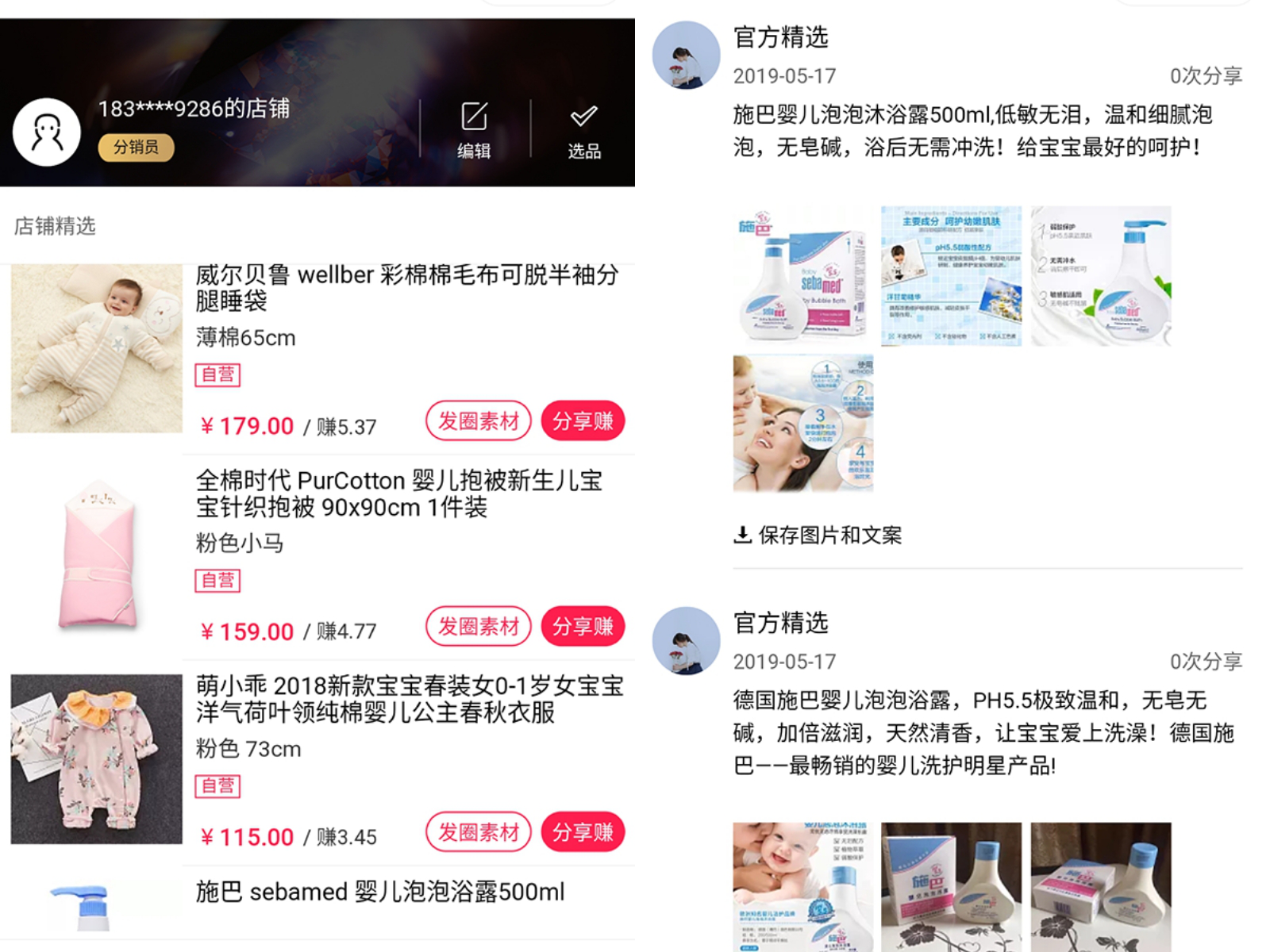 每个商品有配置好的发圈素材,分销员可以选择自己喜欢的素材进行分享,一键保存图片和文案转发到微信群或者朋友圈。