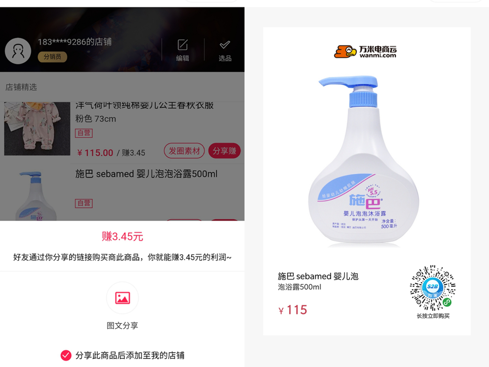 也可以对单个商品一键生成带二维码的分销图,消费者长按识别后即可进入你的小店。