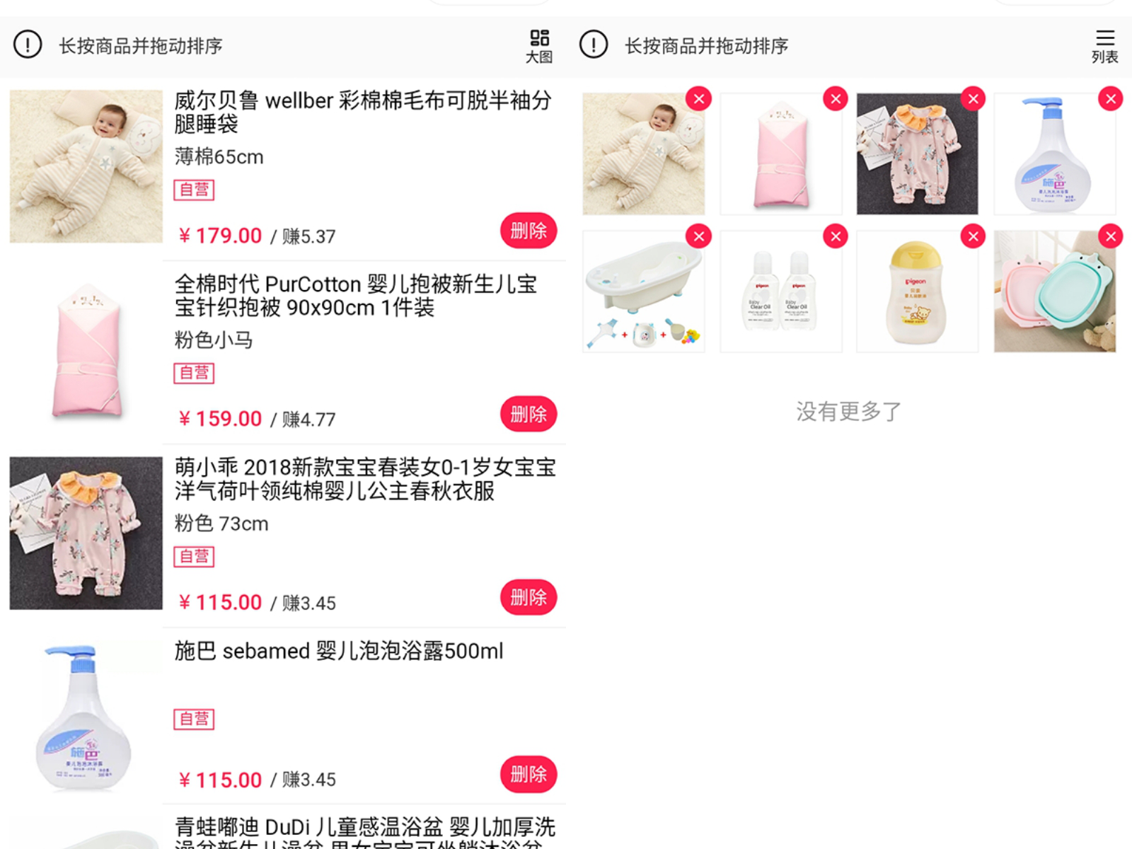 想把最热销的商品排在最上面?so easy,长按商品别松手,想往哪儿拖就往哪儿拖,还可以删除不想分销的商品。