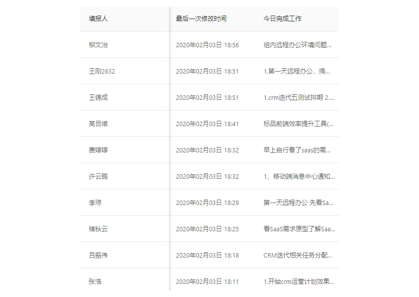远程协作没有了当面沟通的便捷性,相互反馈显得尤为重要,通过建立日报机制,负责人可以及时了了解小伙伴办公情况,帮助其解决问题,也能实现信息实时共享。