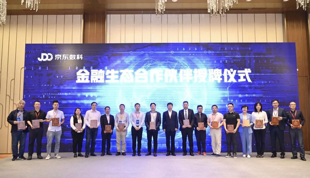 在大会现场,还举行了京东数科金融生态合作伙伴授牌仪式,北京海量数据技术股份有限公司、新华三技术有限公司、北京科蓝软件系统股份有限公司、北京银联商务有限公司、 南京万米信息技术有限公司等15家生态合作机构与京东数科现场签约,杨辉、曹鹏代表京东数科向合作机构代表授牌。