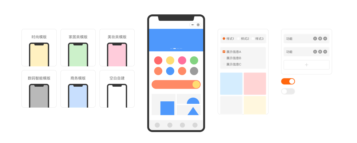 几十种装修组件,精美行业模板一键开店。零技术、高效率搭建高质量的小程序商城,有效降低维护成本。