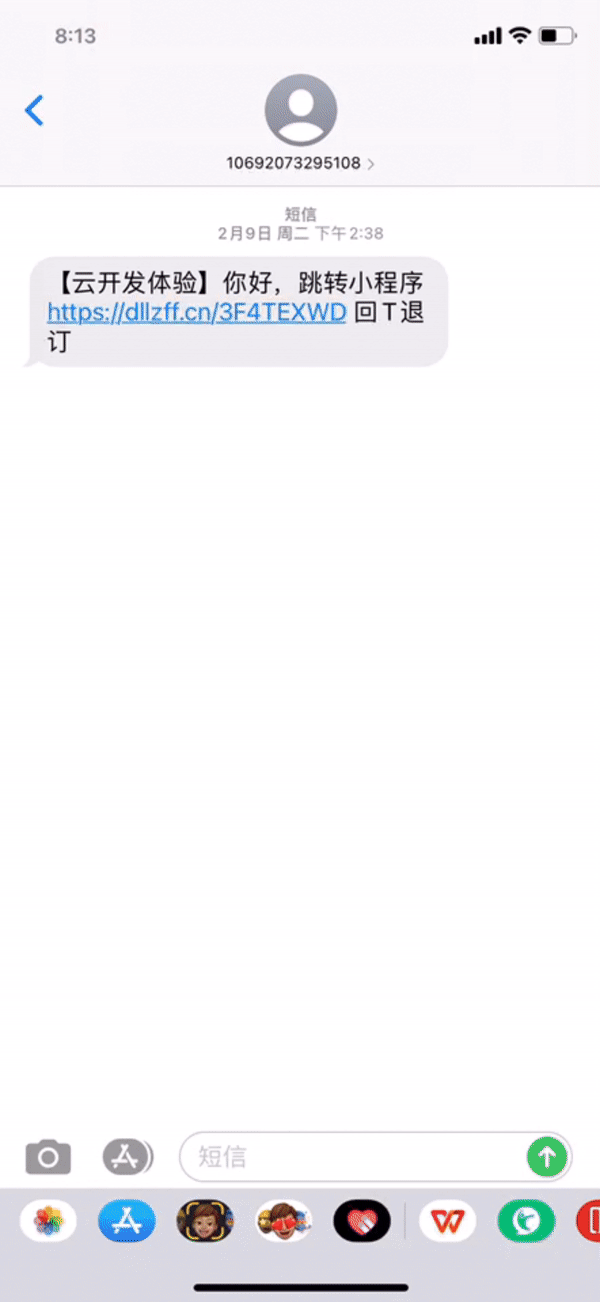 此外,小程序云开发带来强大的动态链接生成能力,可以直接调用小程序云开发短信接口发送短信,还可以给不同的用户发送不同的链接,同时还新增数据分析、可视化报表等短信运营能力。