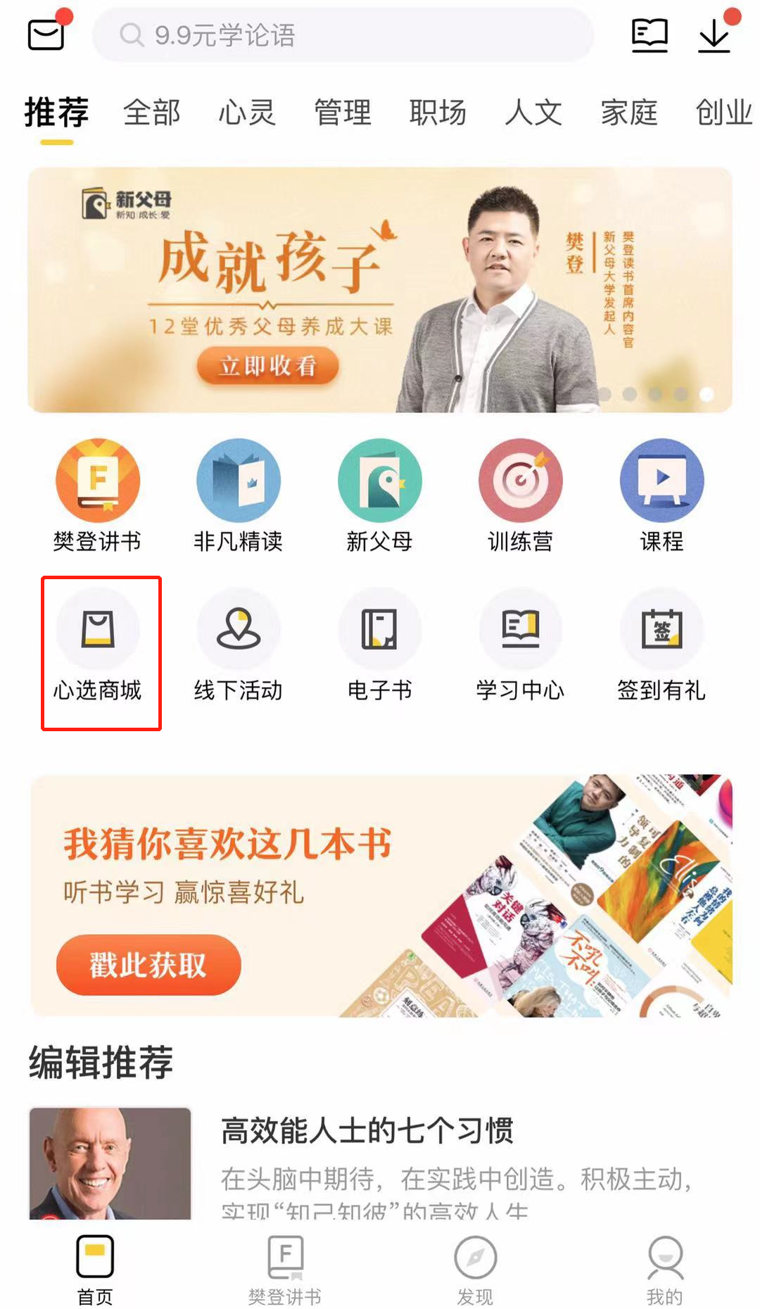 心选商城完美嵌入樊登读书APP,端内可轻松触达,APP注册用户可便捷使用积分抵扣,选购所需商品。