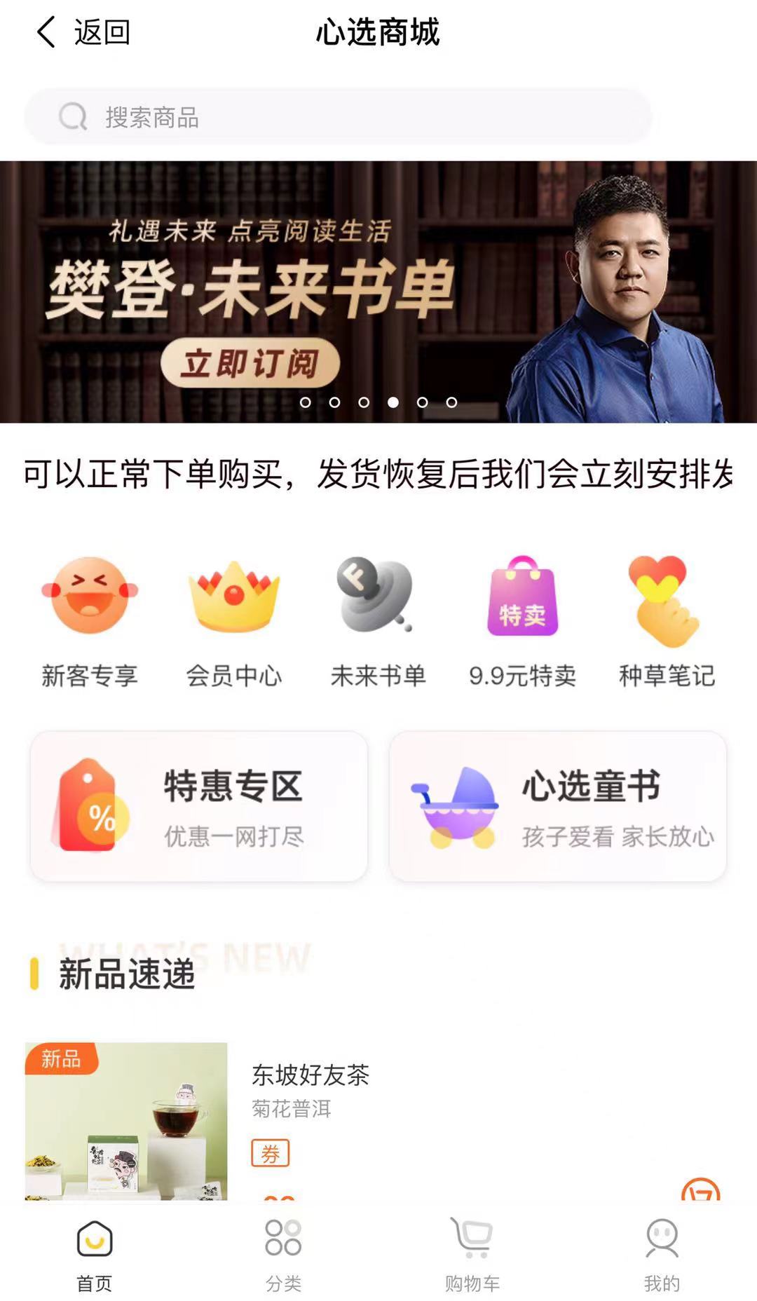 基于万米产品的心选商城有自己独立的完整私域流量池,樊登读书APP内的注册用户自动成为心选商城的潜在消费者,且用户数据私有,不再给同平台其他商户引流。