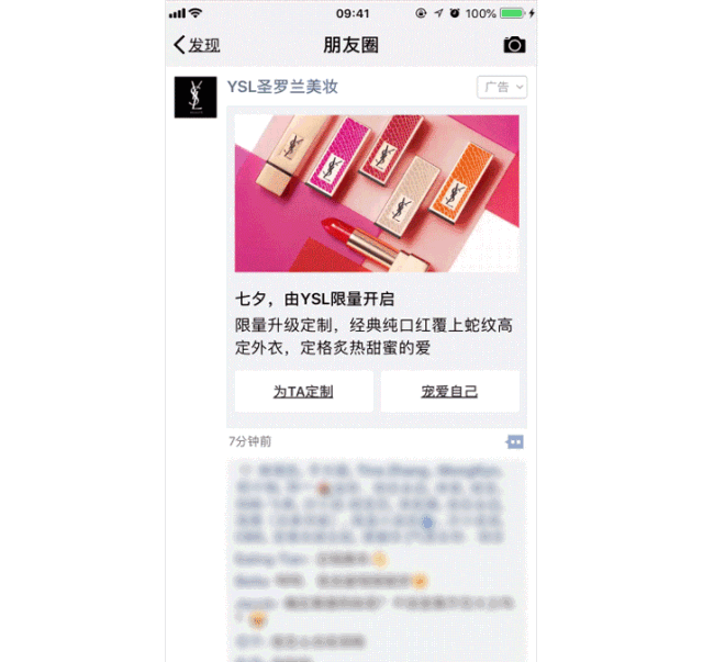 刚刚过去的七夕,除了看到满屏的秀恩爱朋友圈,你是否还看到了鲜花、首饰、美妆等品牌的朋友圈广告,点击滑动屏幕,进入定制的彩蛋视频和节日气氛满满的活动落地页,种草效果满分,还可以@微信好友,分享闺蜜、暗示男朋友送节日礼物都很方便。