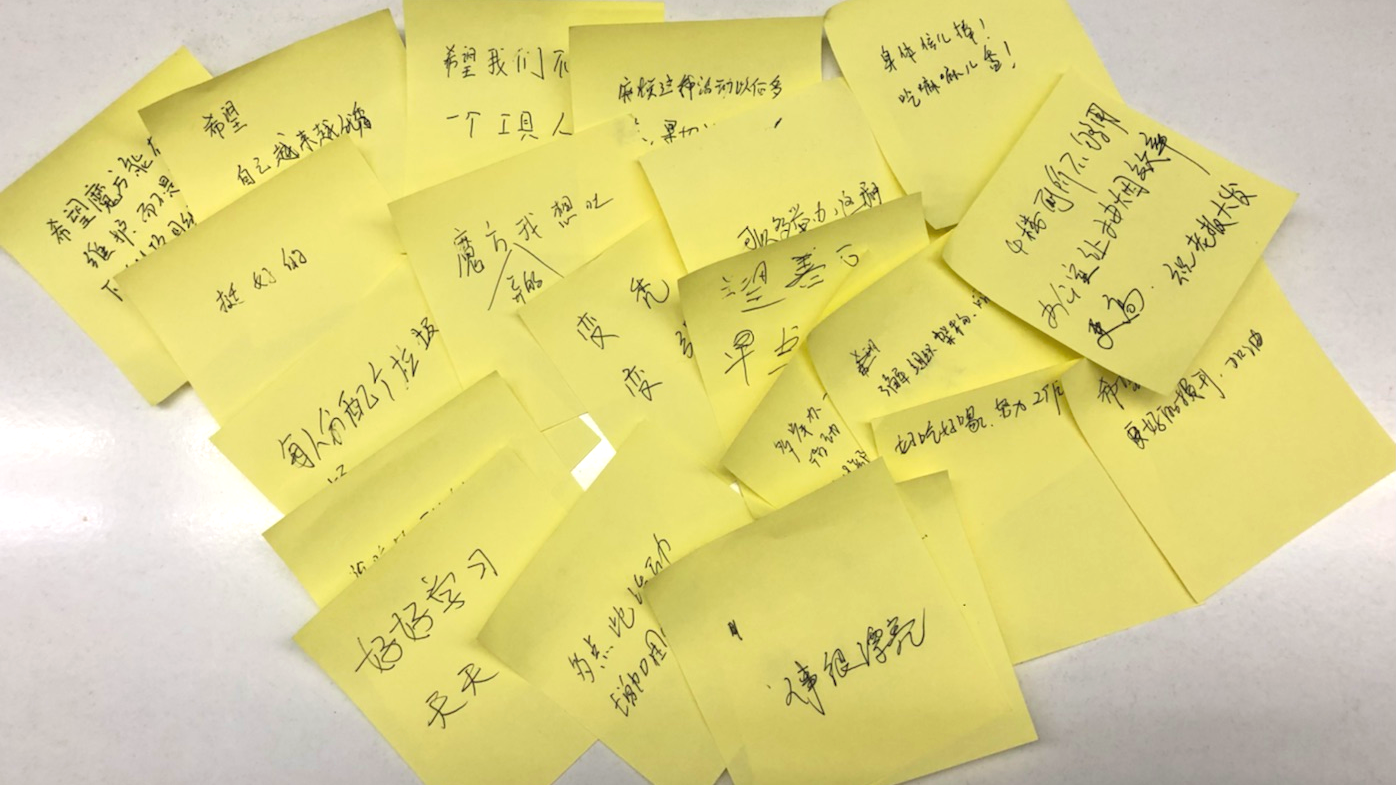 最后,大家把自己想说的话都写在小卡片上,带着期许,继续前进!