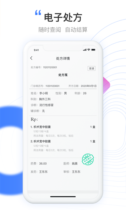 专家在线为患者问诊后,根据患者情况开具电子处方,患者可随时查阅处方内容。电子处方整洁清楚,通过医生处方还可购买处方药,解决以往处方药难买的问题。根据电子处方自动生成购药单,计价准确,金额自动计算,患者下单结算即可,节省医生和患者的时间,保证患者快速用到药品,缓解病痛。
