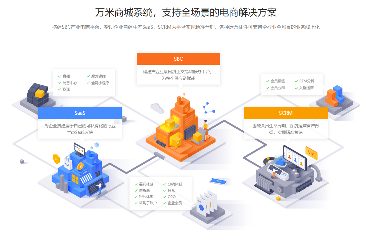 万贯秉承“既是开发商,更是市场运营商”的经营理念,选择万米成熟的sbc平台产品搭建五金机电在线交易平台——万贯汇。万贯汇通过商家入驻平台,为广大商家建设自己的线上店铺,将线下业务线上化,帮助商家快速拓展线上营销渠道,打造“专业市场+网上商铺”的运营模式。