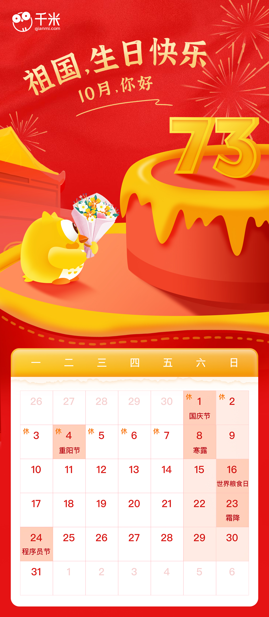 10月,你好!祖国,生日快乐!