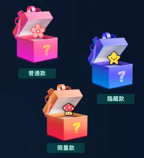 3、支持盲盒售卖,用户购买后开启盲盒,支持设置隐藏款、限量款和普通款的差异化抽取概率,提升参与者的体验,刺激复购。