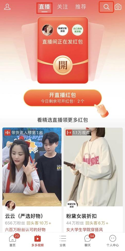 3、拼多多APP新增直播入口,目前处于试水阶段