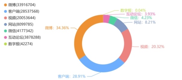 在信息传播渠道上,“618”期间“消费维权”类信息传播渠道主要有微博、客户端、视频、网站、微信、互动论坛、数字报等。其中,微博信息量最高,占比34.36%;其次是客户端,信息量占比28.91%;第三是视频,信息量占比20.32%。