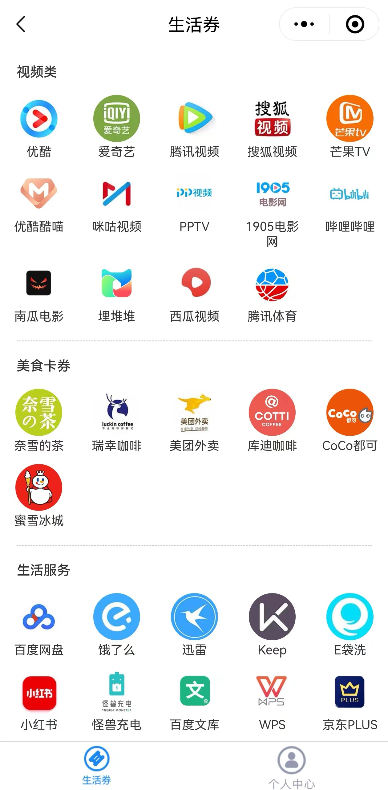 04、电子券:平台整合了多种电子券服务,包括视频会员、美食优惠、出行旅游以及音频阅读等。用户可以直接在平台上购买这些电子券,卡券将会立即充值到相应的账户中,使得用户可以在我们的平台或者其他合作平台上使用;