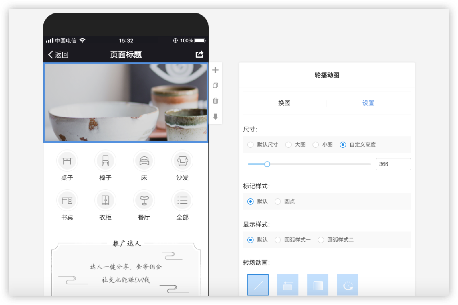 更简单、强大的可视化设计,自带精美模板,零技术、高效率搭建高质量的商城网站,有效降低小程序维护成本。