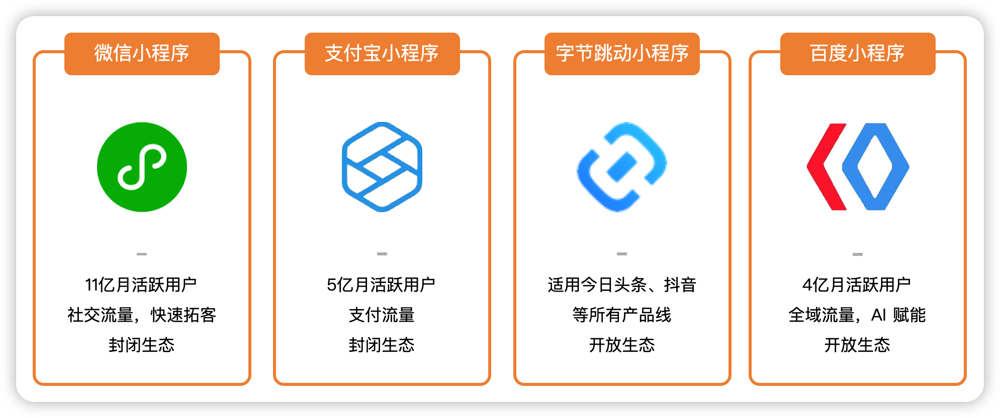 微信、支付宝、头条、抖音、百度等小程序,一次拥有。