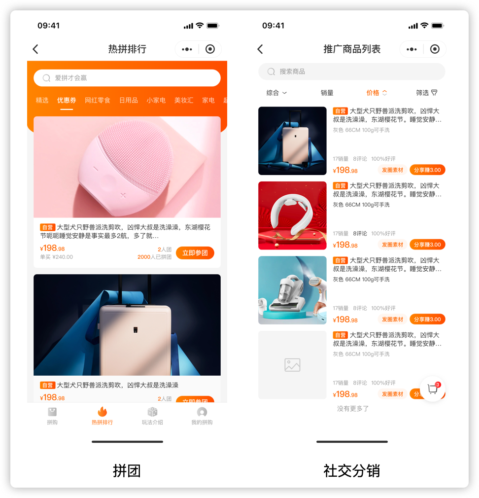 拼团、社交分销等可快速实现裂变传播,分销获返利,人人皆可成为分销员帮你分销卖货。
