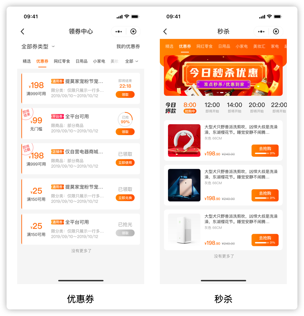通过发券、秒杀等营销手段刺激用户消费下单,带来更多订单和销量。