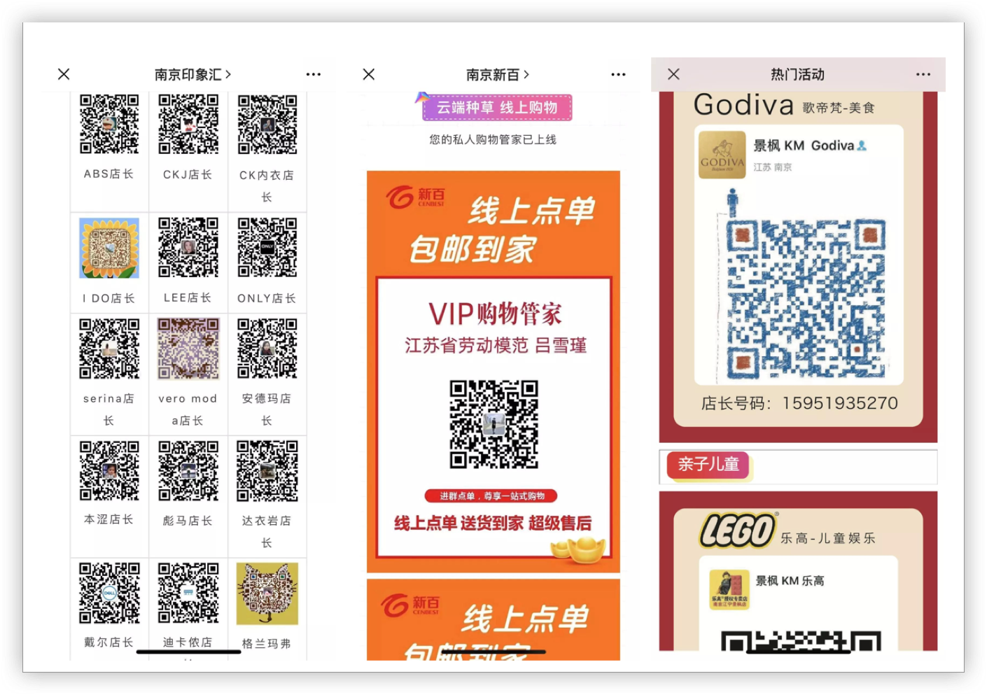 被强制闭店、又无线上销售渠道的各大购物商场,只能依靠店铺员工加微信、建购物群进行销售。