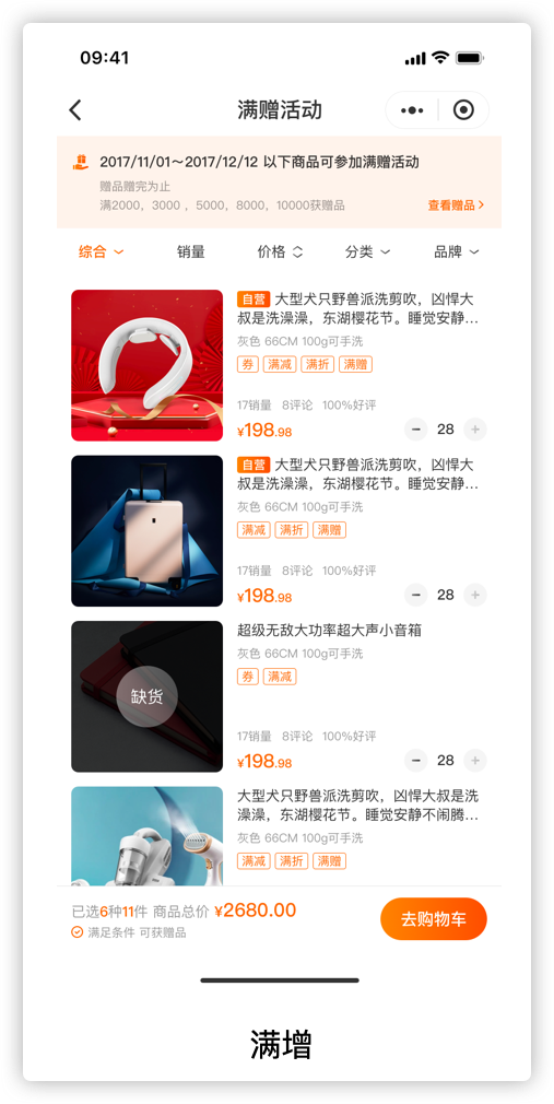 满减、满折、满赠等满足客户满足条件即可获利的心理,提高客单价,获取更高销售和利润。