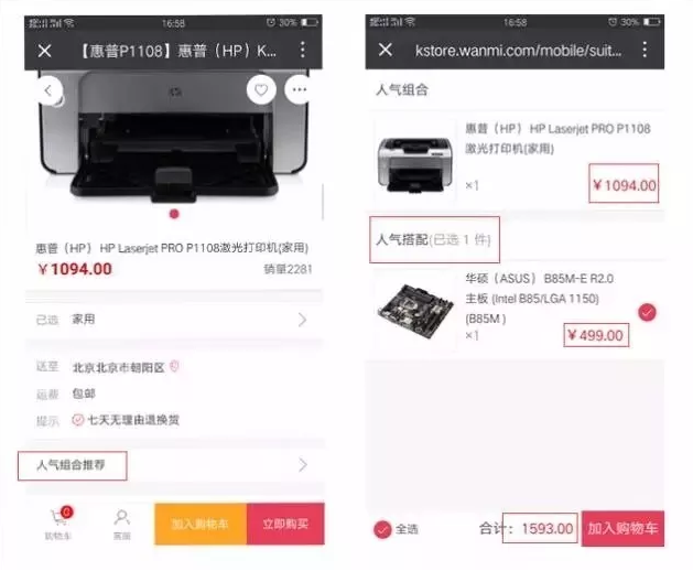 当我们设置好后,在购买主推款时,下方会显示人气搭配款。当然,这两款相关性较强,平时可以配合使用最好,这样可增加推荐的成功率:
