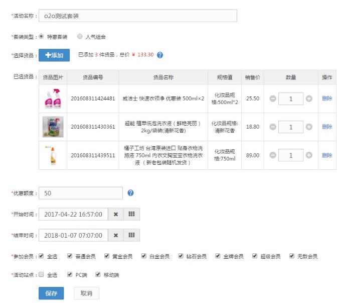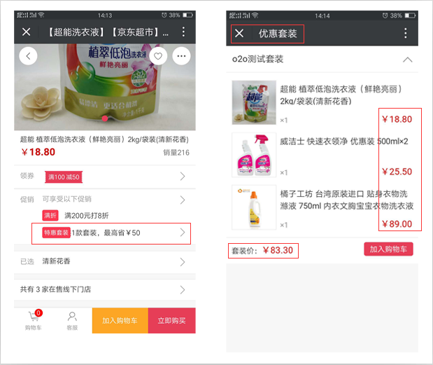 优惠套装可以提高商品的曝光,套餐价销售更优惠可引发关联购买。可单独在商城首页进行推广和分享,在相关商品的详情页也可看到套餐的内容: